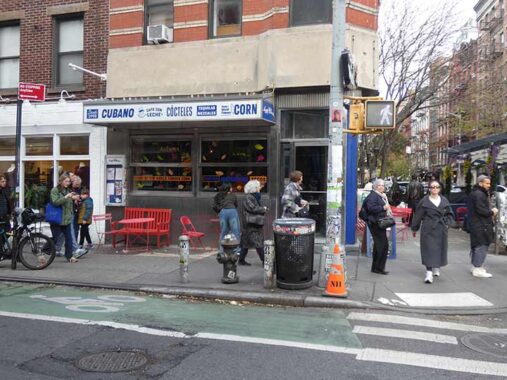 You can pick up some Spanish from NYC sidewalk signs, such as on Cafe Habana, #17 Prince Street corner of Elizabeth. But these are easy to figure out if you don’t: “coffee with milk,” “cocktails.” This part of town changes frequently and I have walked the length of Prince street twice, the first time in a suit following an in person interview, when you still put a suit on for office jockey interviews.