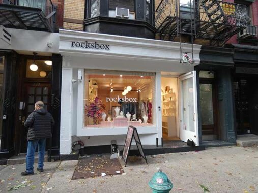 I’m attracted to distinctive storefronts even if I have no interest in the offerings. Rocksbox is a creative name for a jewelry store, and the title is rendered in a font called Plantin. For years the weekly Village Voice was set in Century Schoolbook text with “heds” in Plantin Condensed Bold. Later the NY Daily News also used it in the 1980s.