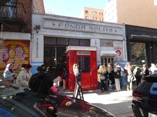 At 267 is a popular taqueria, Tacombi, in what looks like a former garage. Food is served from a Volkswagen bug wagon inside.