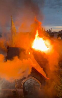 THE Reformed Dutch Church of Hallets Cove (later Good Church of Deliverance) at 27-26 12th Street in Astoria Village was built in 1888; its verdigris’ed steeple replaced the original in 1900. The parsonage, which may date as early as the 1850s, is just to its south. Nothing in Astoria Village has Landmarks protection, and many of its historic buildings have been lost over the last thirty years. One more can be added to the list, as the church suffered a devastating 5-alarm fire on April 23, 2026 and could be a total loss.